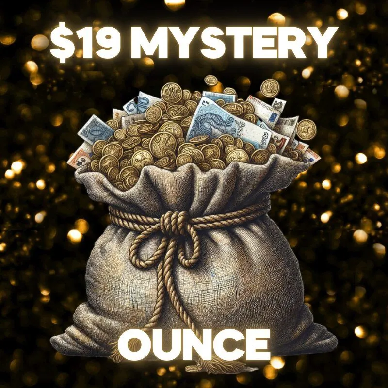 Introducing our newest value tier: $19 mystery ounces that deliver solid smoke at an unbeatable price. This is your goldmine for everyday bud, simple, reliable, and packed with value.